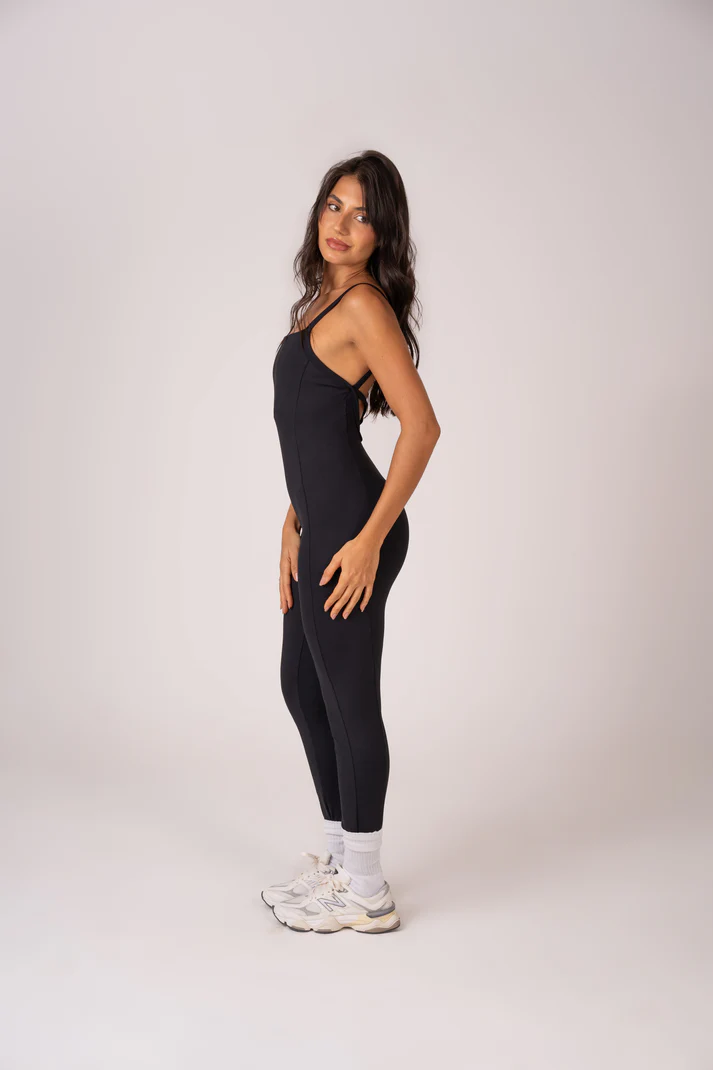 Com modelagem que valoriza a silhueta, o macacão conta com alças largas e um elegante decote quadrado na parte frontal. Nas costas, o design surpreende com um decote profundo e alças cruzadas, unindo charme e funcionalidade. O tecido encorpado oferece compressão na medida certa, sem perder a leveza e a respirabilidade, permitindo liberdade total para seus treinos mais intensos.
